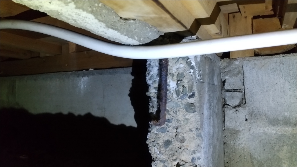 写真:リノベーションする時に床下を確認。配管を通すため、基礎を壊した形跡あり。